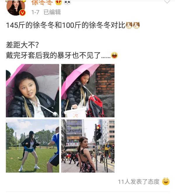 而网友看到徐冬冬这组减肥对比照后,有人说她145斤时像村妞,徐冬冬直接回怼,说“你管我像村姑还是香菇”,并表示只要自己不辜负父母以及爱她的人就好,并不是很在意别人的看法。