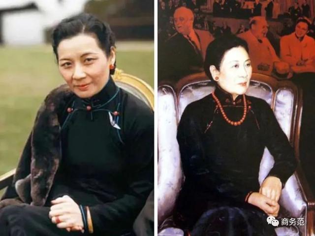 宋美龄还喜欢红珊瑚,不仅把它作为首饰佩戴,就连旗袍上的纽扣都是上好的质地,和黑色的旗袍很是相配,显得端庄大气。