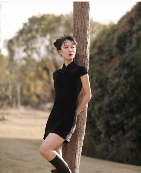 比起这种浅色类型的短款服装穿搭,深色的短款服装在女性的旗袍穿搭中,则是会显得更加的低调而又大方。但有时也很容易展现出一种鬼马的风格。对于这样精致而又低调的服装穿搭在整体的表达中很容易让人更加的心动。