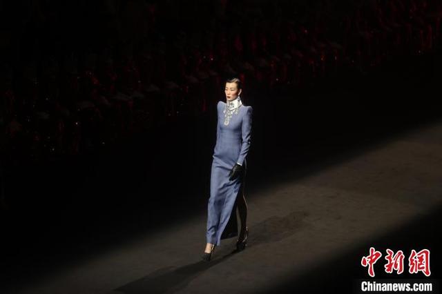 图为模特进行旗袍展示 张畅 摄 5月28日晚,胡社光高级定制全国时尚巡演在武汉首演。超过300名旗袍爱好者参与此次的T台表演,用时尚语言展现传统中华国粹旗袍的魅力。