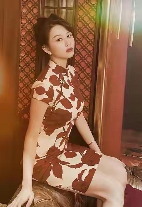 沈月尝试新风格,穿一身印花旗袍风情万种,不输年轻时的邱淑贞 。