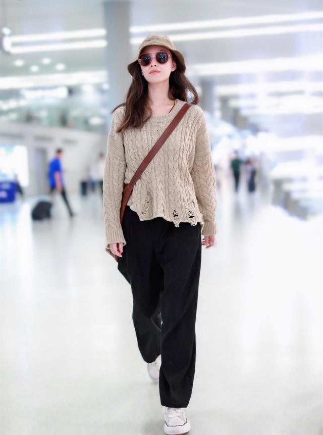 倪妮的机场look也是非常具有看点的,针织毛衣最大的好处就在于线条优美,而且也不失风采。很多人都觉得简单的搭配方式没有亮点,不过这一次倪妮倒是诠释了什么叫做优美简单的风格。下半身选择宽松的裤子可以遮挡腿部肌肉,对于腿部不好看的妹子来说绝对是福音。