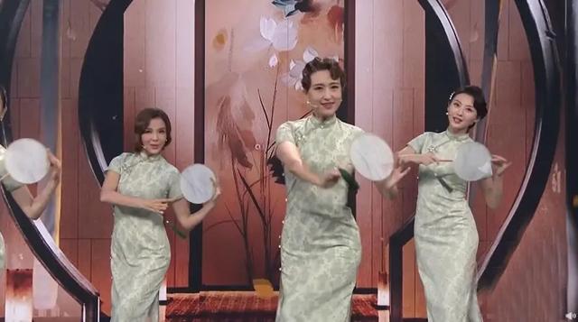 这次主持人们穿着的旗袍属于比较淡雅的风格,先看版型,经典改良款的版型更加轻便舒适,也便于行动,尤其是这次又是舞蹈,所以服装肯定要更加便于舞动,束缚感不能太强,画面中看,主持人们穿的这款旗袍也是那种微微宽松的款式,不会太宽松太垮,又不会太过紧身,这样一来就非常微妙地把她们凹凸有致的身材曲线给充分地展现在大家眼前,伴随着舞蹈动作,简直不要太婀娜多姿呢!颜色上看,淡淡的绿色调清凉淡雅,非常凸显高级感,甚至会有那种朴素而高级的风格,对于走气质路线的她们来说,简直太适合了!