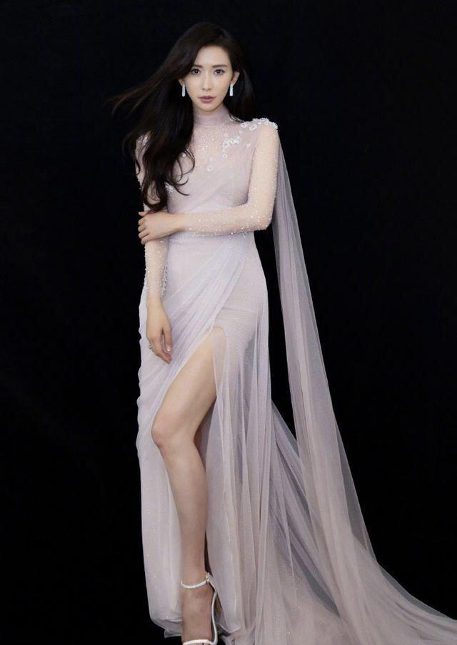 林志玲独特的气质一直让人称赞,她可以很好地将优雅与少女感结合起来,任何时候都是温婉可人的,这个时候搭配薄纱礼服气质就更为优越。