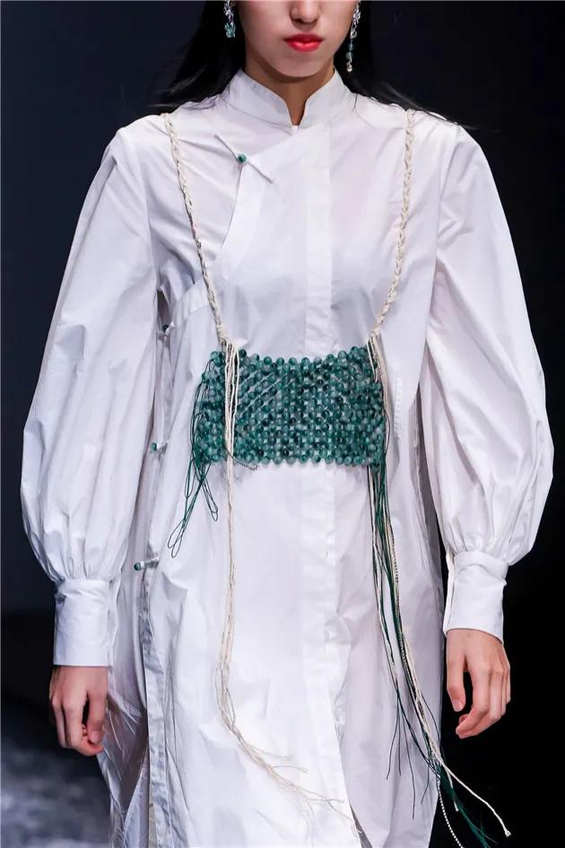 在旗艺·旗迹 CHIAYI 2022春夏系列中,品牌就在服装上巧妙的运用了盘扣元素来体现中国传统工艺的巧思。