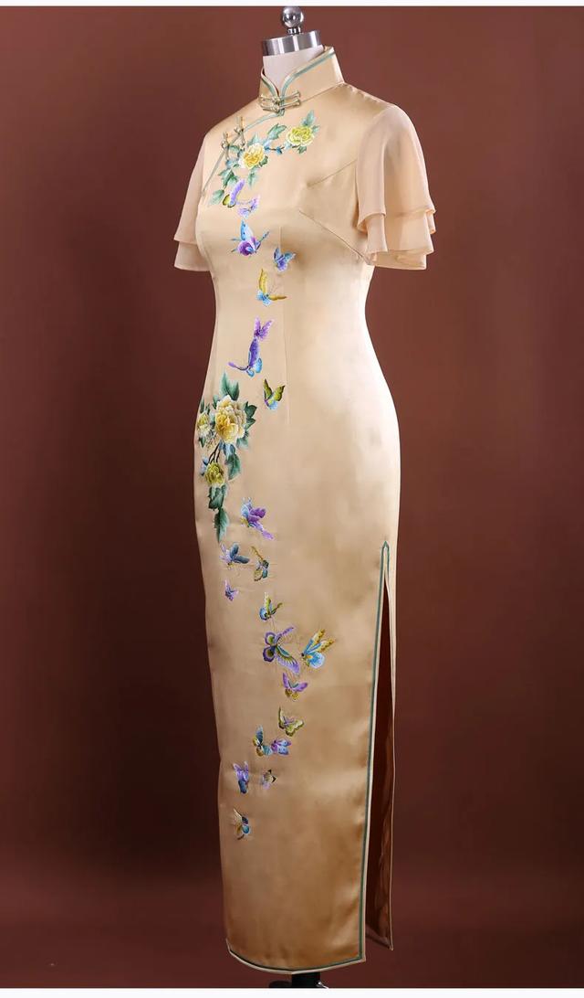 母亲有一身手工旗袍,绣着蝴蝶
