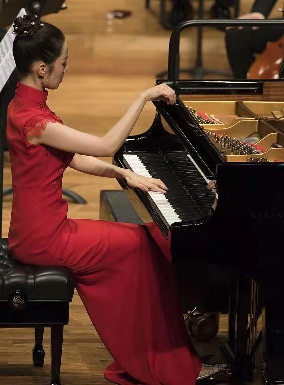 不过这次她的演出,红色旗袍装,感觉有些显壮实,感觉面相也和郎朗越来越像了。