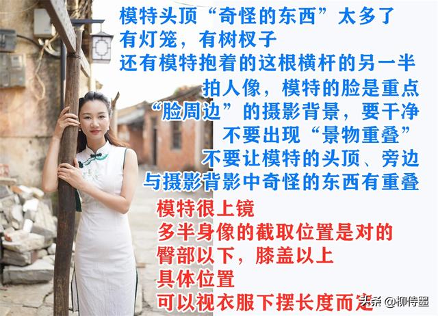 穿旗袍拍照,如果模特是“靠着”的动作,记住身体不要往后仰。