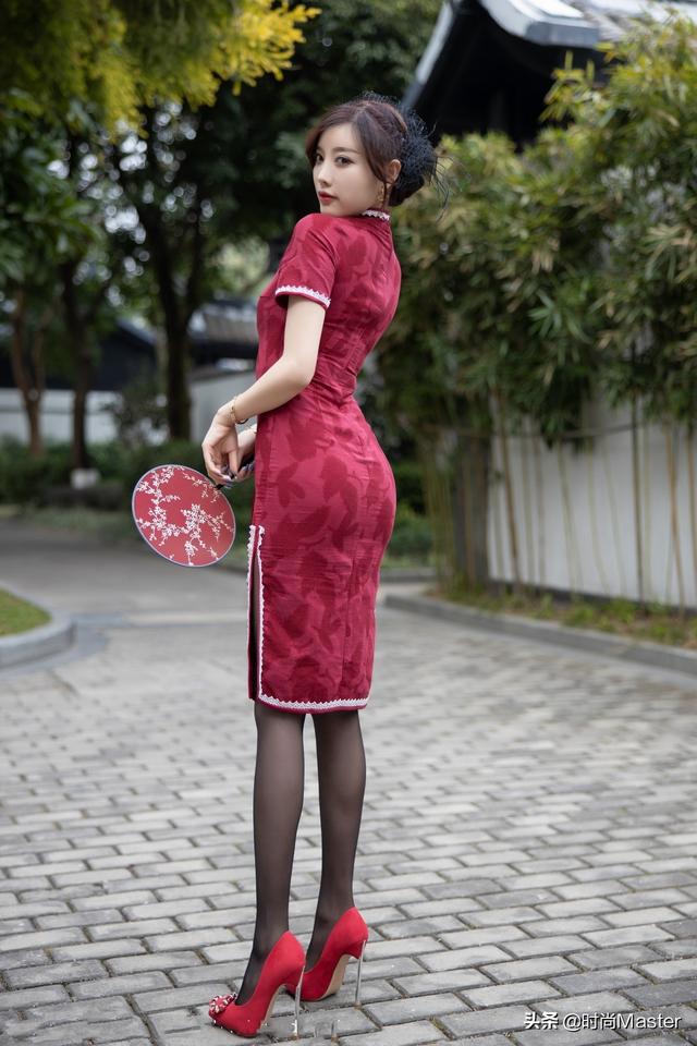 红色旗袍搭配高跟鞋,高贵典雅时尚大方